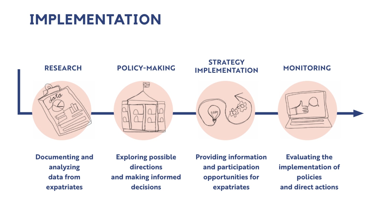 Policymakers and other entities participating in the Expatriate Strategy can utilize the suggested framework internally in their current policy-making processes. We identified four stages in the strategy-making process: Research, writing policy, plan execution, and monitoring.