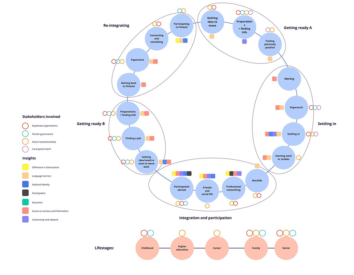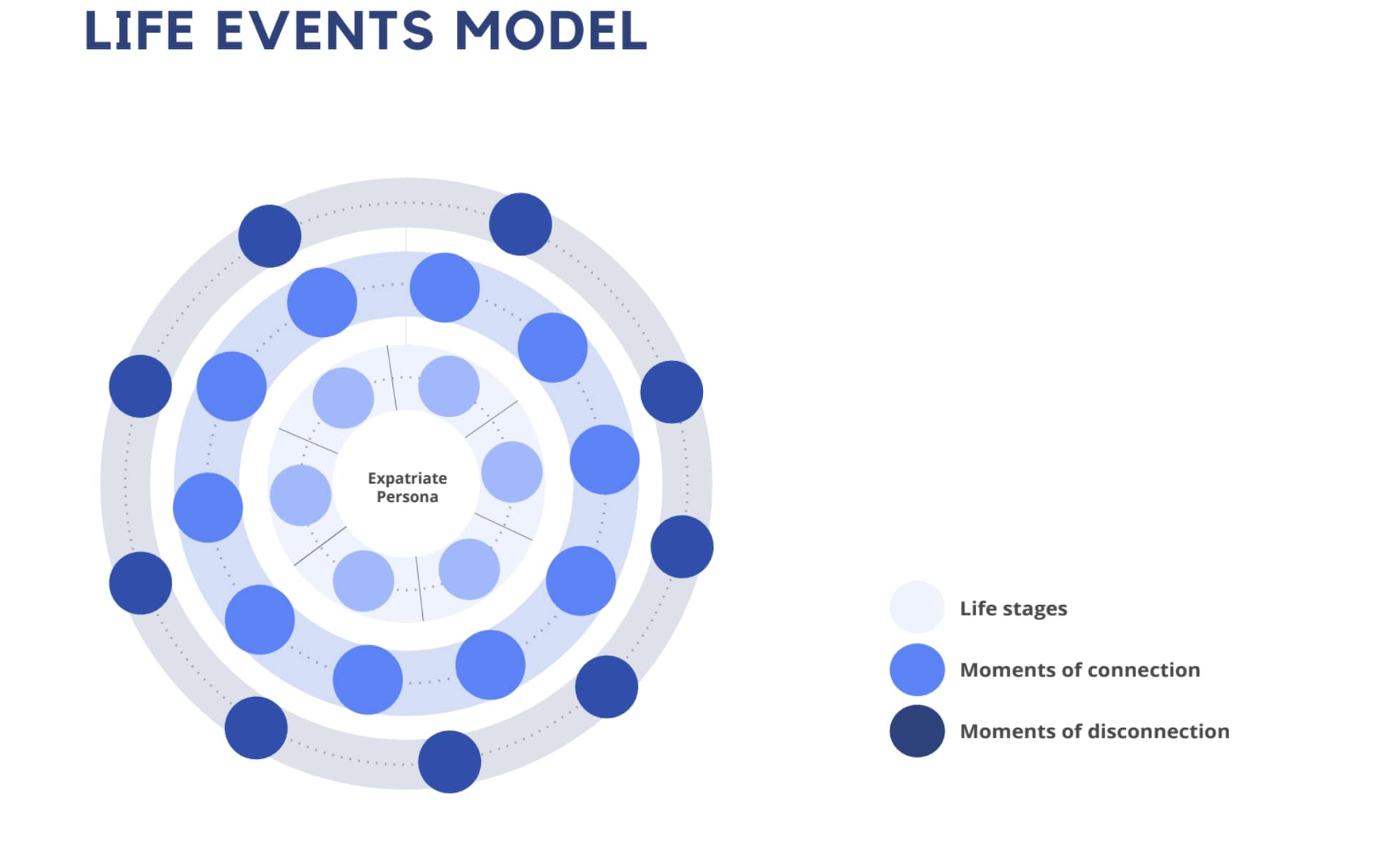 Life Stage Model visualises expatriates’ journeys, needs, and connections.