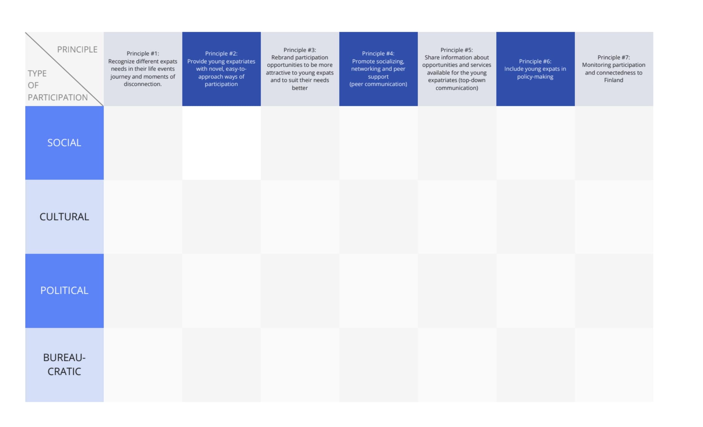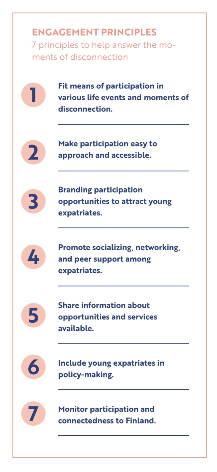 We proposed that to effectively serve the young expatriate demographic, policymakers need to better understand how they engage with Finnish society and navigate life abroad. To address this need, we developed the "Understanding Young Expatriate Finns' Participation" service design toolkit. This toolkit will help policymakers map the various life stages of young expatriates and create informed policies that cater to this demographic.