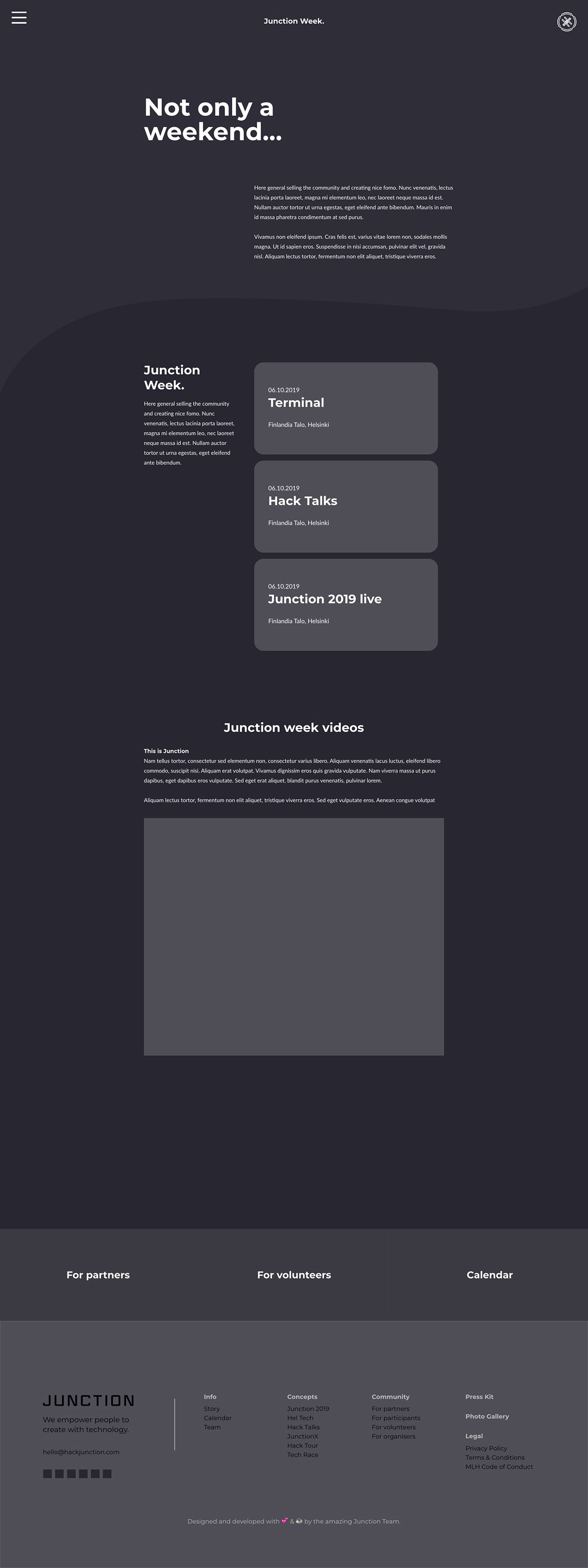 We have outlined the main project goal: Build a robust base structure that allows for changes in visual design of Hack Junction's yearly theme.