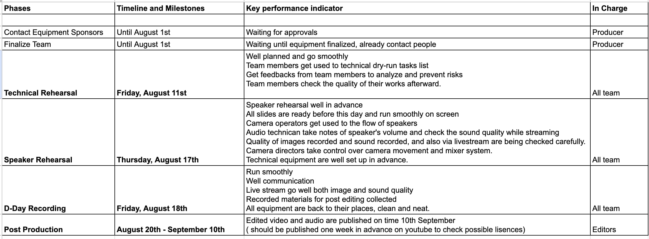 Technical Producer (Lead techinician team, Livestream tech, Pre-to-Post Production)